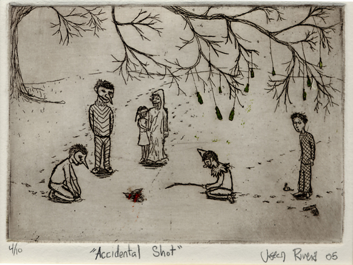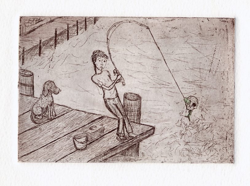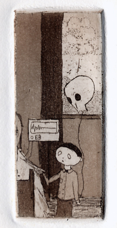 Some intaglio etchings from 2006. Each print has its own story, interpretation is up to the viewer. These are all quite small, usually no larger than 5×5.