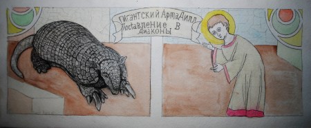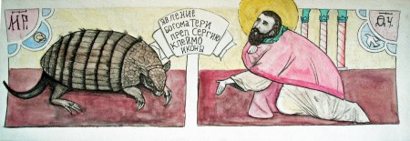 Saint series 2008-2009. Series based on a fascination of some of the more unusual saints out there and their unusual circumstances of martyrdom. And armadillos.