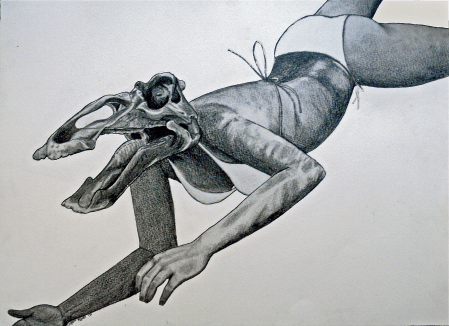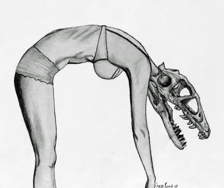 A fun series to do, one of my largest. The dilemma of shifting to dinosaur drawings or female figure drawings was solved one day with the seeming illogical “why not both”. One of my largest series (about 25), about 8 are currently at Progressive Galleries in Lancaster, Pa. The rest have been sitting around since my schedule hasn’t really allowed time or money towards framing them all. Hopefully soon I’ll make that happen and they will be able to grace a gallery wall.