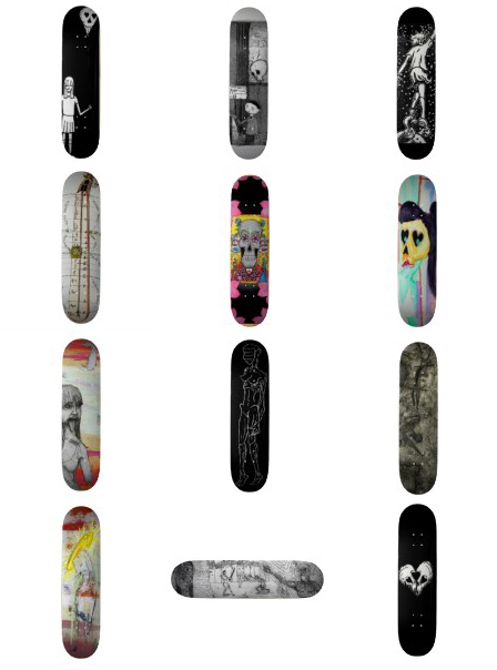 I now have custom skate decks available through zazzle.com. Choose from 12 designs, many new original designs will be soon available. Check them out here