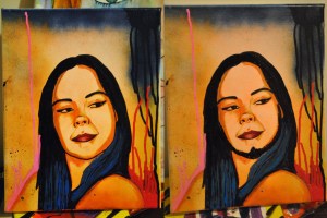 Oil marker and spray paint on canvas