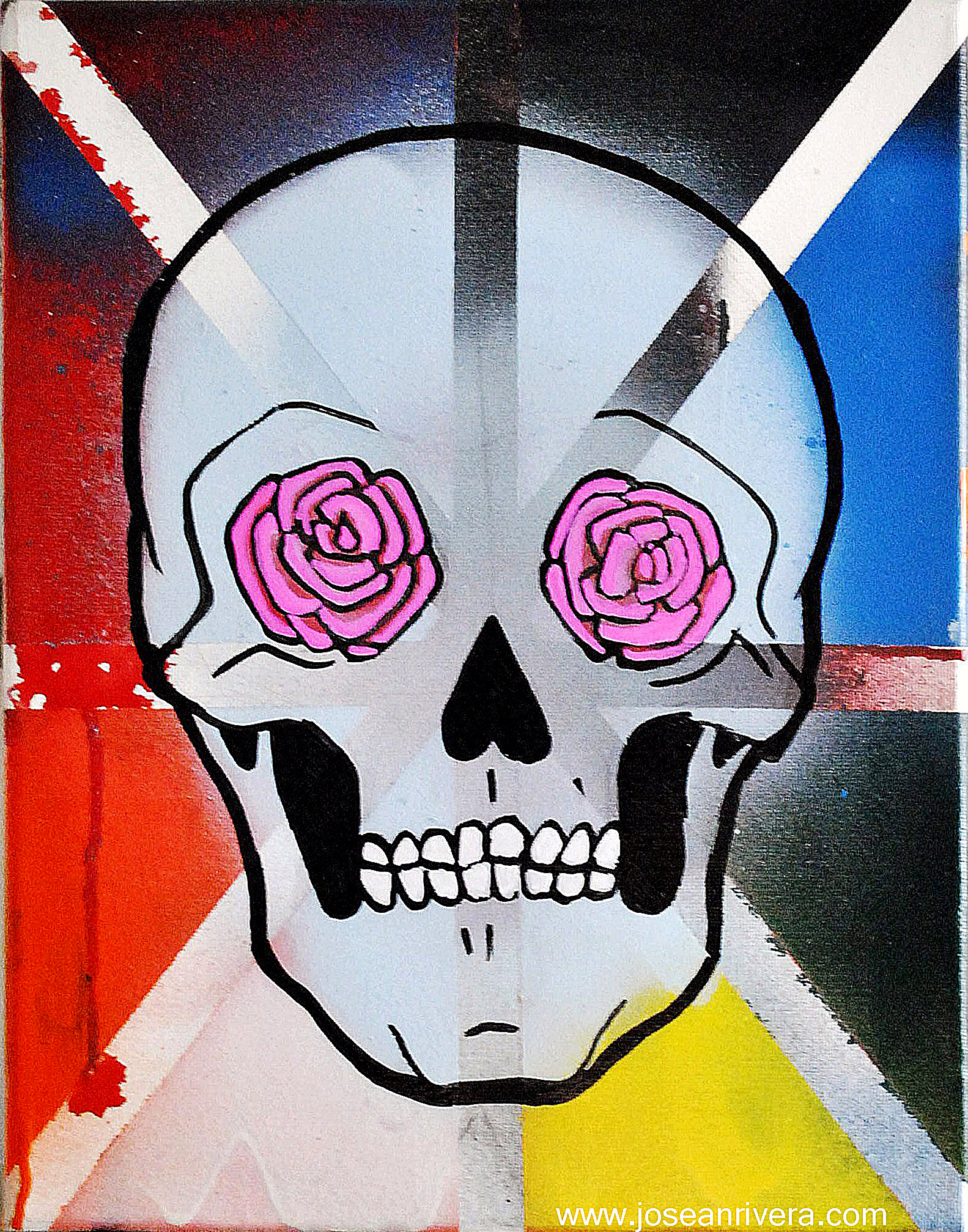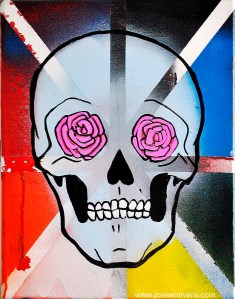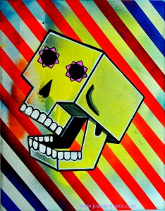 Summer’s on the way, which means one thing for me: 3 months off! Spring sprung up skulls back in my paintings, and I’m exploring new ways to work with them. My backgrounds are more coherent, although there is still a bit of randomness and chaos. I find it humorous the extent that color plays in my work, since about 6 years ago all my work was void of color. I figured I’d get to it at my own pace, which happens to be perpetually late.
