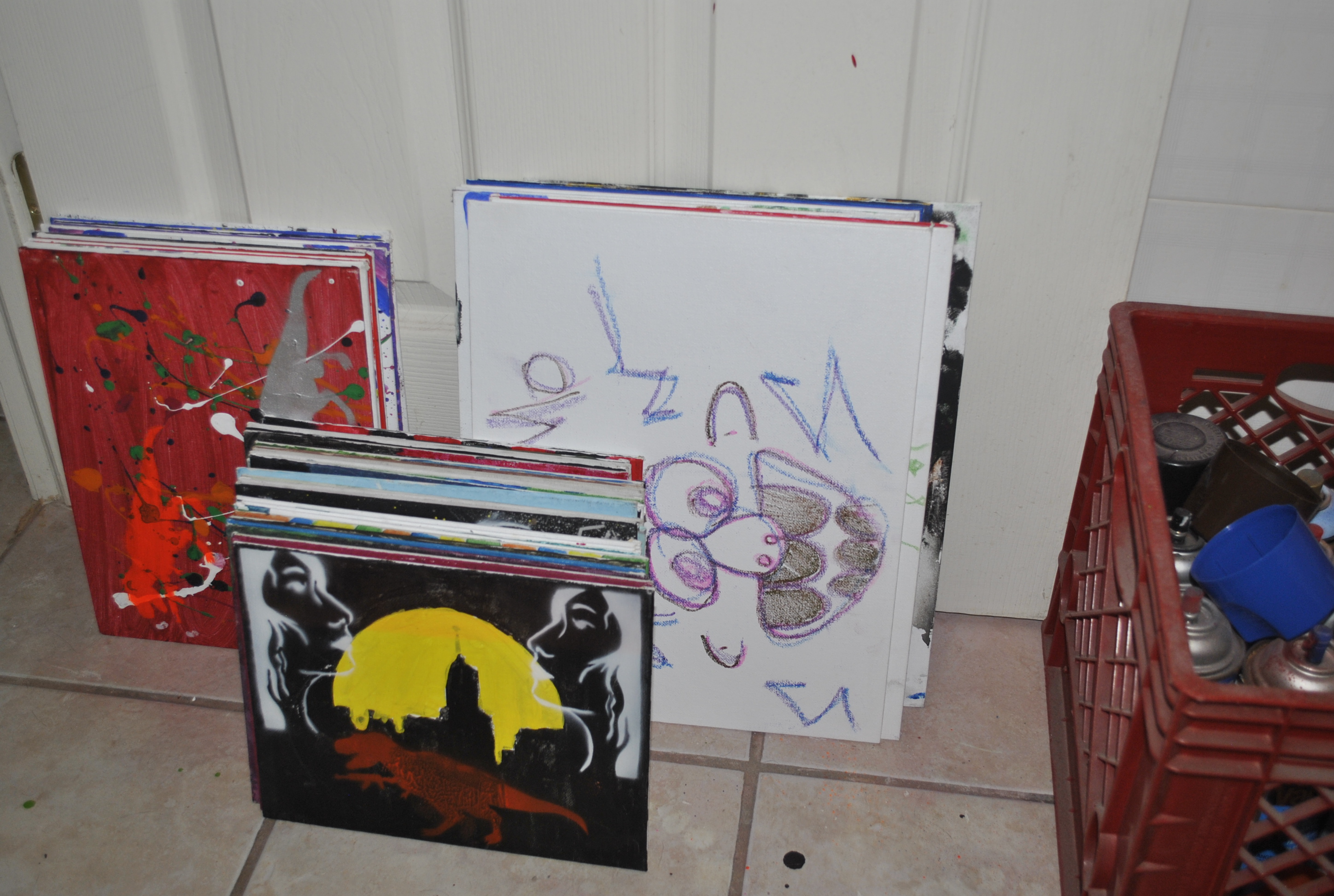 Summers means a lot of free time, which equals a ridiculous amount of art is being produced in my apartment. To offset this, I’m currently offering original paintings at some cheap-o prices! These are mixed media, using spray paint stencils and paint markers on discarded acrylic paintings (collected over the years from former students, but not before getting yelled at for throwing out art).
