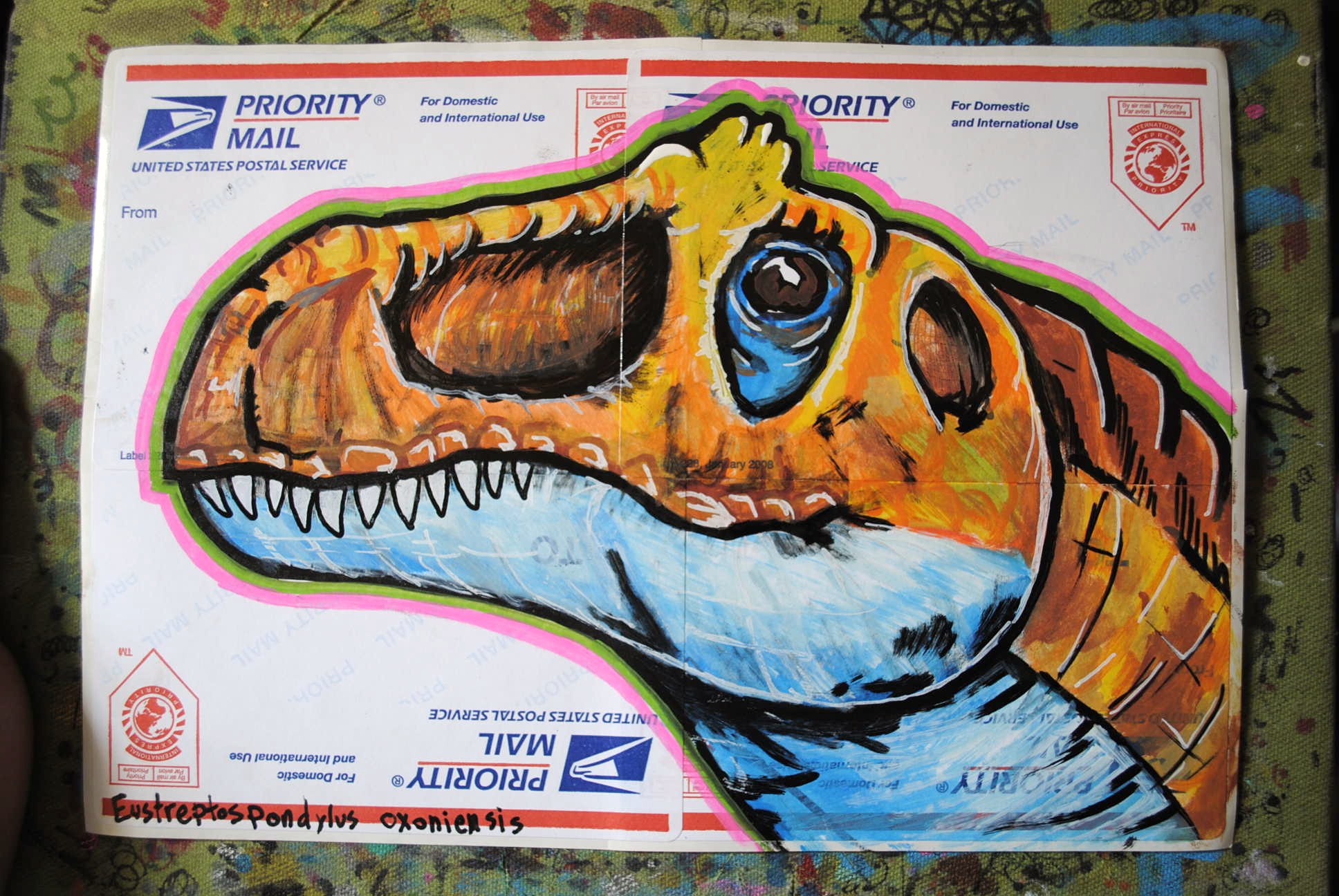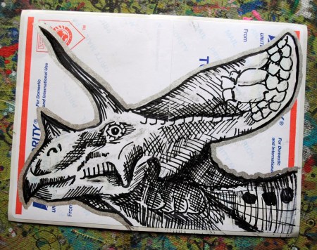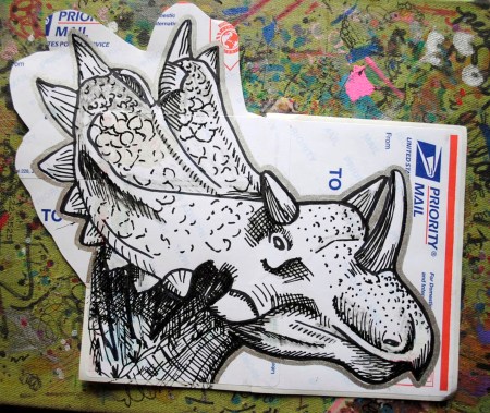 I recently picked some USPS labels and decided among other things to draw up some new dinosaurs. It’s been a while since I’ve drawn some terrible lizards, and along with the state of the Postal Service right now, it seemed more fitting than ever.